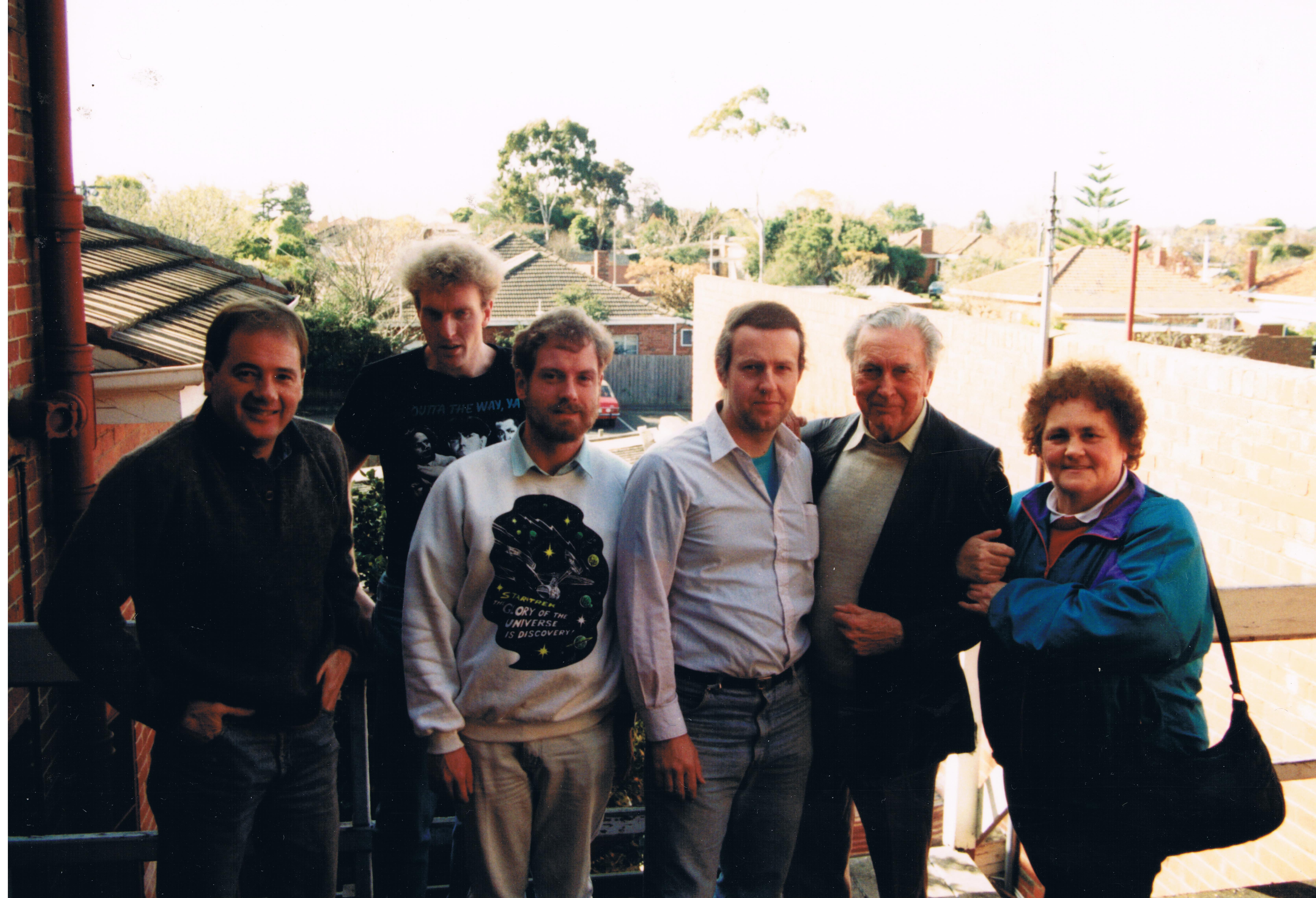 * Photo: From left: Greg Franklin (SF fan), Diane Marchant (Australian Star Trek Welcommittee representative), Geoff Allshorn (Space Show Presenter), and Wynne Whiteford (Science Fiction author) (Photo courtesy Geoff Allshorn) * Photo: Guests and Space Show production crew, Moorabbin (Photo courtesy Geoff Allshorn) |